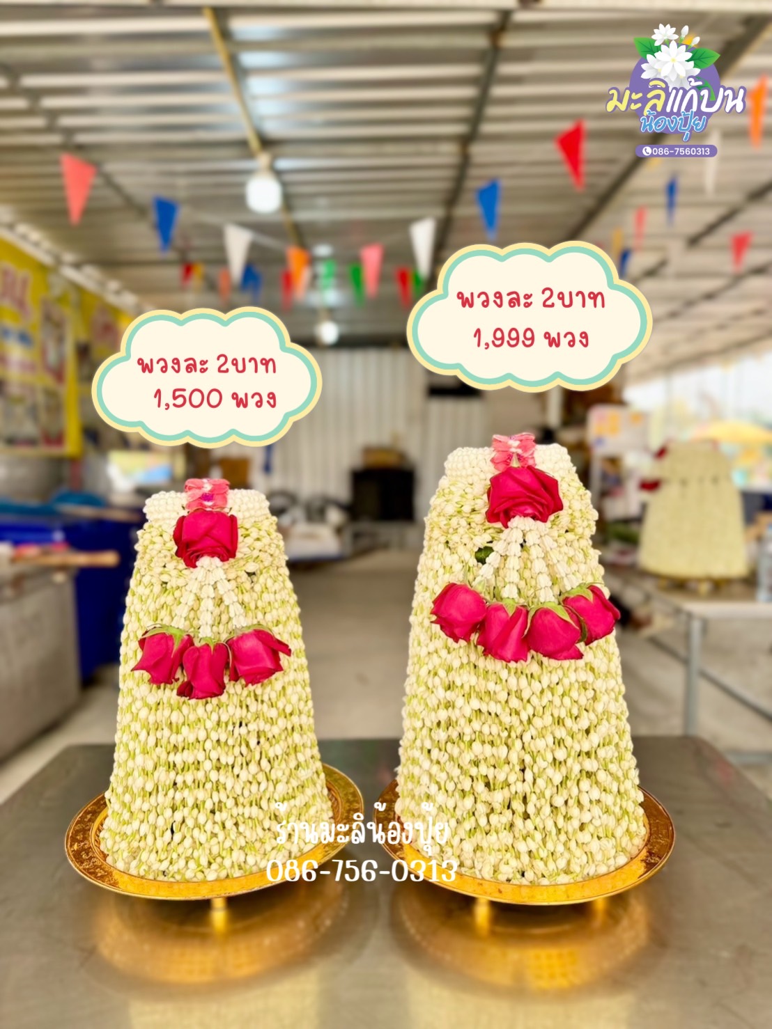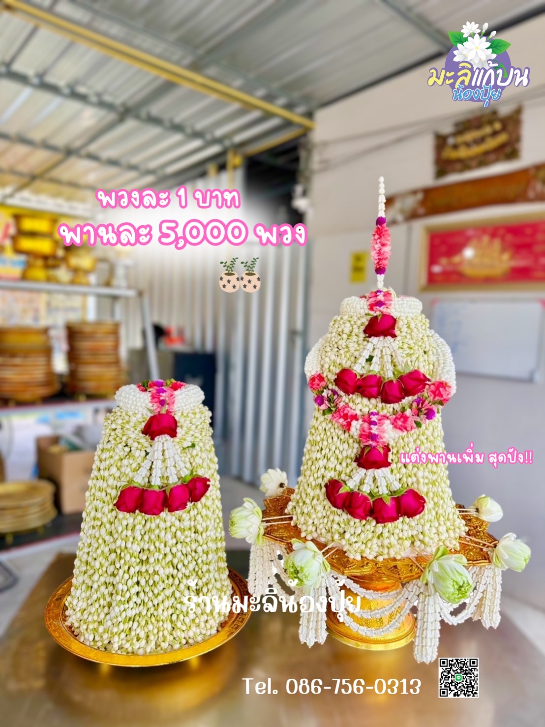 บริการสั่งทำพวงมาลัยมะลิสดทุกขนาดตามต้องการ